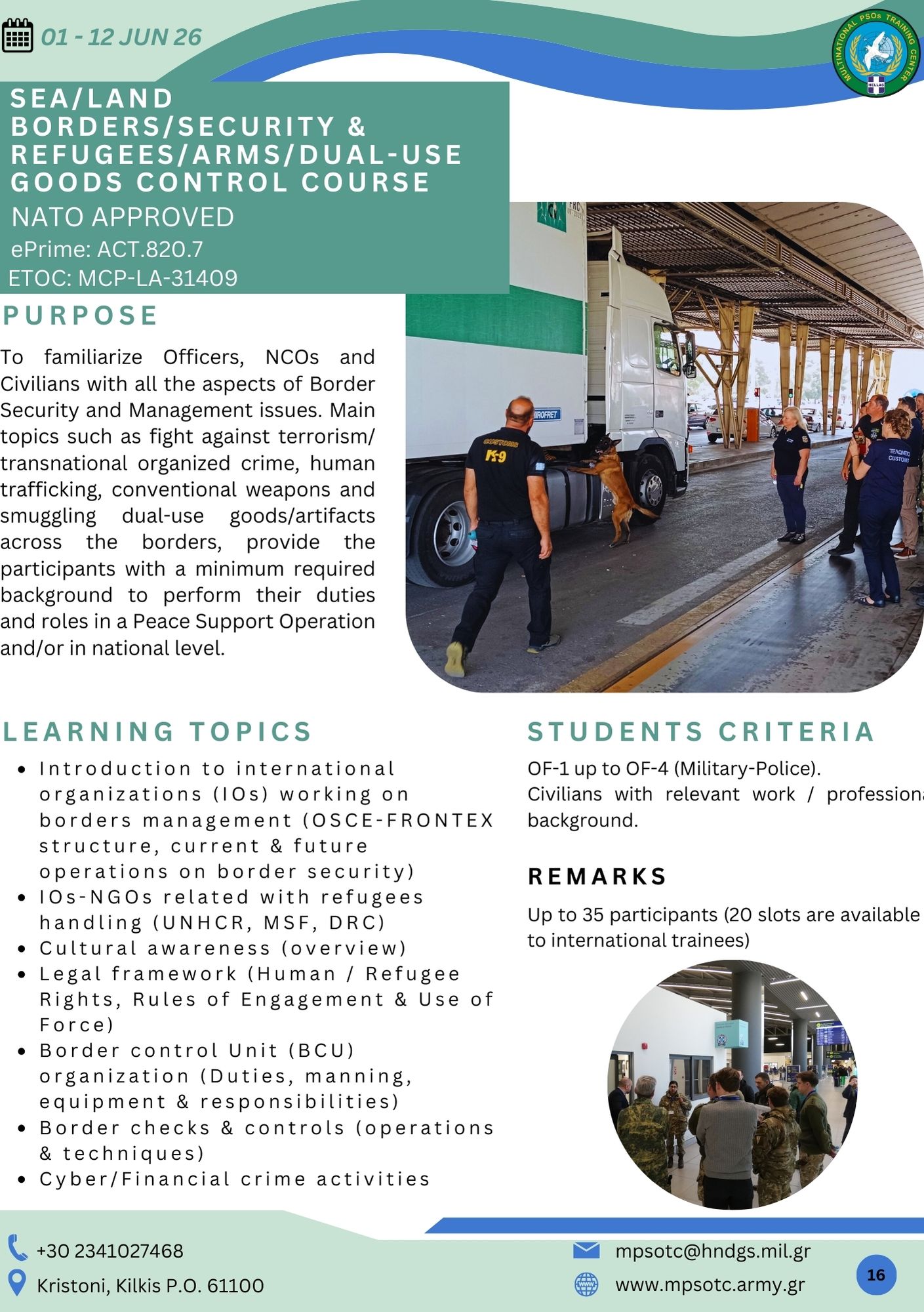 8. Σχολείο «Ασφάλειας χερσαίων-θαλάσσιων συνόρων και ελέγχου μεταναστών και αγαθών/όπλων διττής χρήσης»